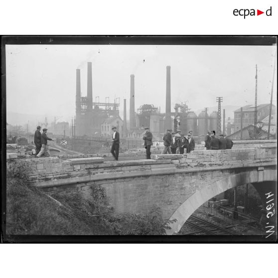 Pompey, une fonderie que les allemands ont bombardé par avions et par canon de 380. Pont d'accès à l'usine.
