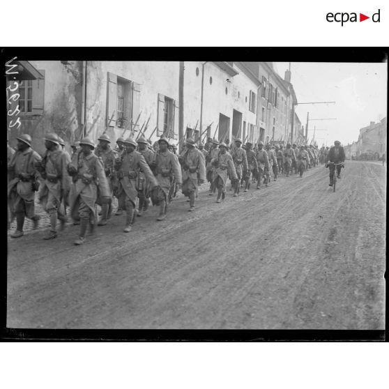 Laneuveville-devant-Nancy, le 12e bataillon de chasseurs malgaches allant au repos.