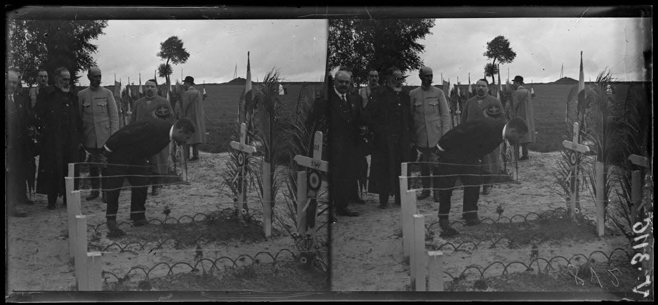 Etrepilly, Seine-et-Marne, anniversaire de la Marne. M. Dumesnil parcourt le cimetière.