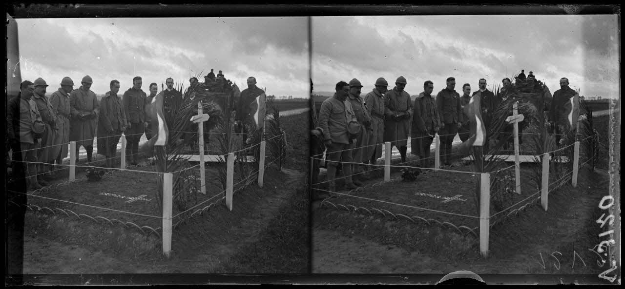 Etrepilly, Seine-et-Marne, anniversaire de la Marne. Soldats américains et français devant des tombes. [légende d'origine]