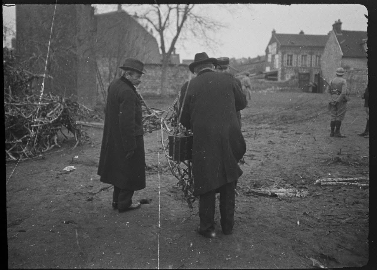 Inspection des débris d'un Zeppelin abattu à Compiègne le 17 mars 1917.
