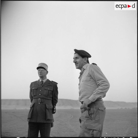 Conversation entre le général Massu et le colonel Thiriet, commandant du secteur des Oasis à Fort Flatters (Bordj Omar Driss).