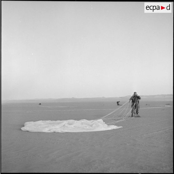 Parachutage de légionnaires de la 1re compagnie saharienne portée de la Légion étrangère (CSPL) près de Fort Flatters (Bordj Omar Driss).