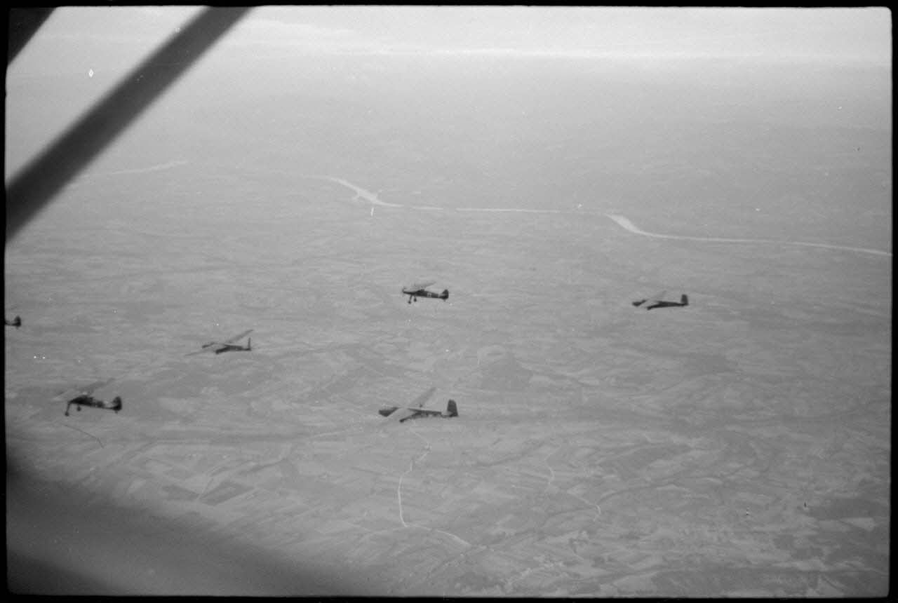 Au dessus de la Drôme, lors d'un exercice aéroporté, trois planeurs DFS-230 du Luftlandegeschwader 1.