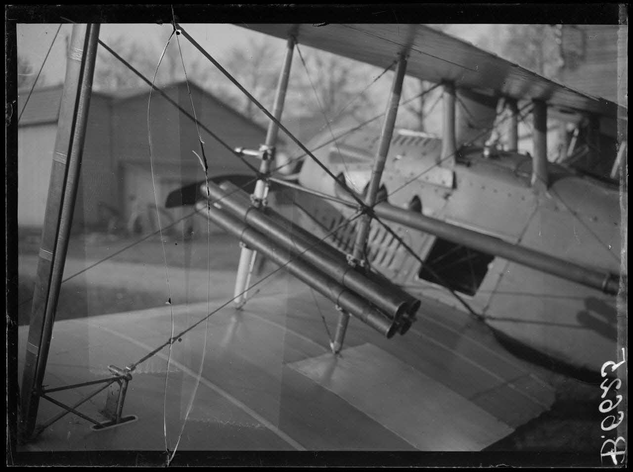 Sur le terrain d'aviation de Villacoublay sont menées des expériences de tirs de fusées contre les ballons d'observation. Un Spad est équipé d'un tube lance-fusées et d'un appareil de visée.