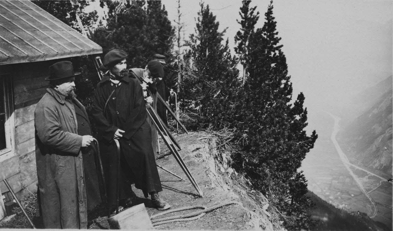 Jules-Louis Breton et Paul Helbronner supervisent les relevés de mesure lors d'une expérimentation de tir au sommet de Prégentil.