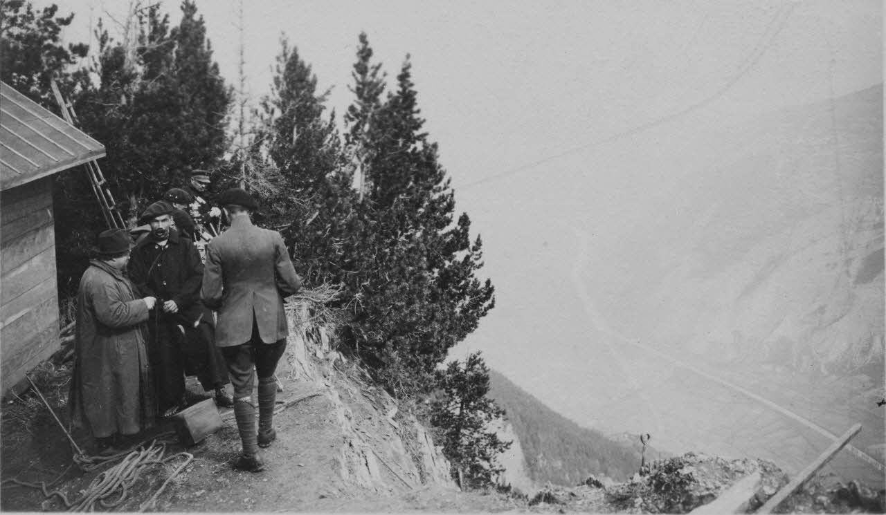Jules-Louis Breton et Paul Helbronner supervisent les relevés de mesures lors d'une expérimentation de tir au sommet du Prégentil.