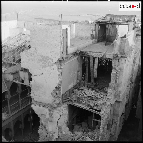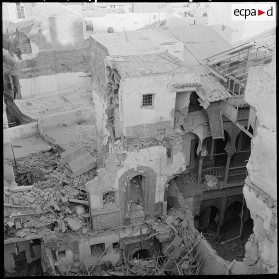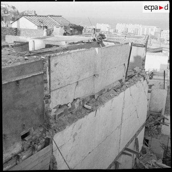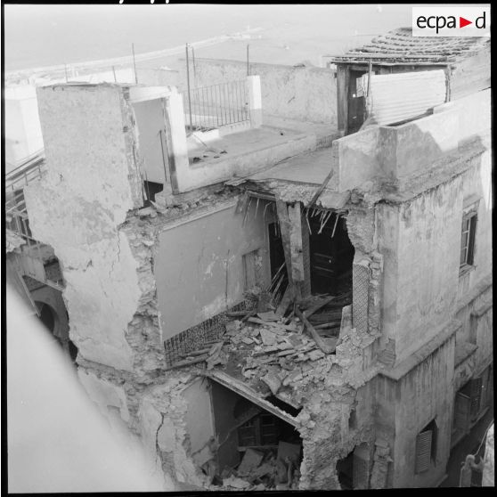 Explosion à la casbah d'Alger. Habitations en ruine.