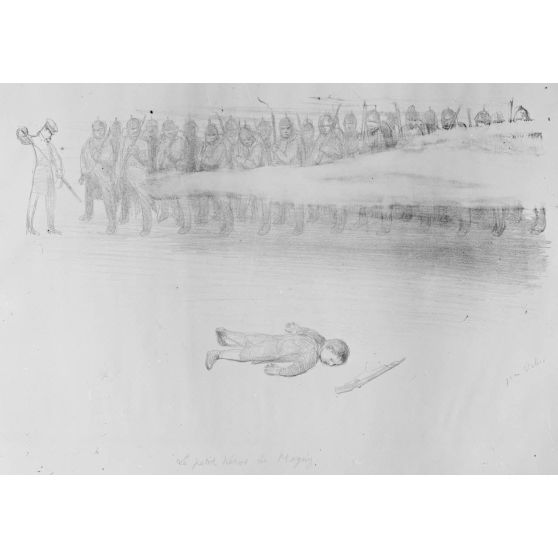 Paris. Musée franco-américain. Métro Leblanc. 6 avenue Malakoff. Le Lieutenant Max Doumic veillé par ses hommes.
