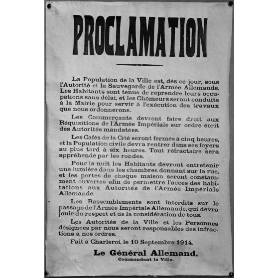 Paris. Musée franco-américain. Métro Leblanc. 6 avenue Malakoff. Affiche. Proclamation Charleroi. 10.7bre 1914.