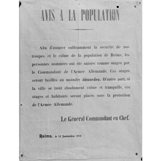 Paris. Musée franco-américain. Métro Leblanc. 6 avenue Malakoff. Avis à la population. Reims. 12 sept. 14.