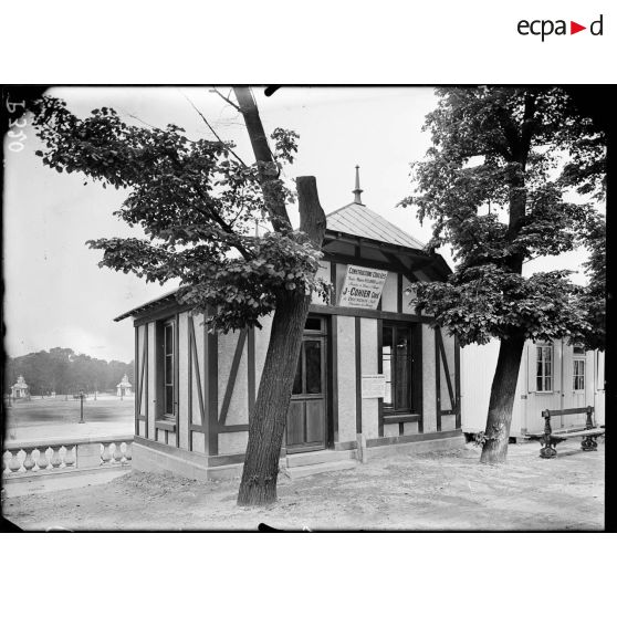 Pavillon démontable en bois à l'exposition de la cité reconstituée aux Tuileries, à Paris.