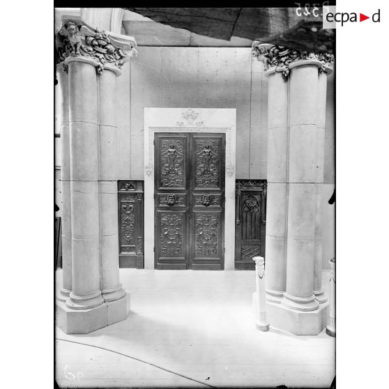 Exposition de la cité reconstituée aux Tuileries, à Paris. Porte de sacristie en "boisine".
