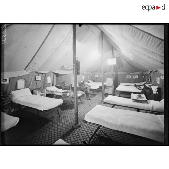 Exposition des dons américains à la Croix-Rouge française. Tentes canadiennes.