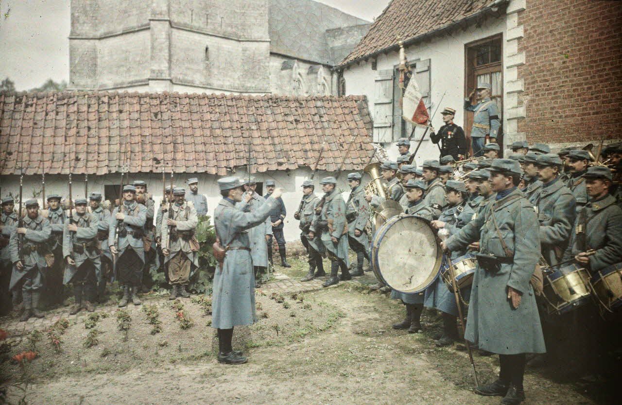 Probablement à l’occasion du 14 juillet 1915 (1), la musique du 77e régiment d’infanterie de Cholet joue la Marseillaise pendant une prise d’arme qui se déroule à Verchin (Pas-de-Calais) où le régiment est mis en cantonnement entre le 2 et le 15 juillet (2).