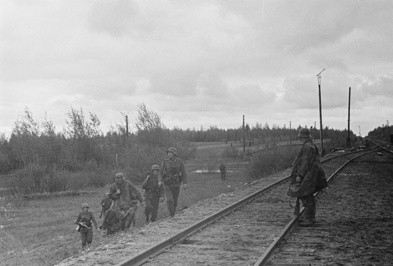 Des fantassins de l'armée de terre allemande lors d'une mission contre les partisans.