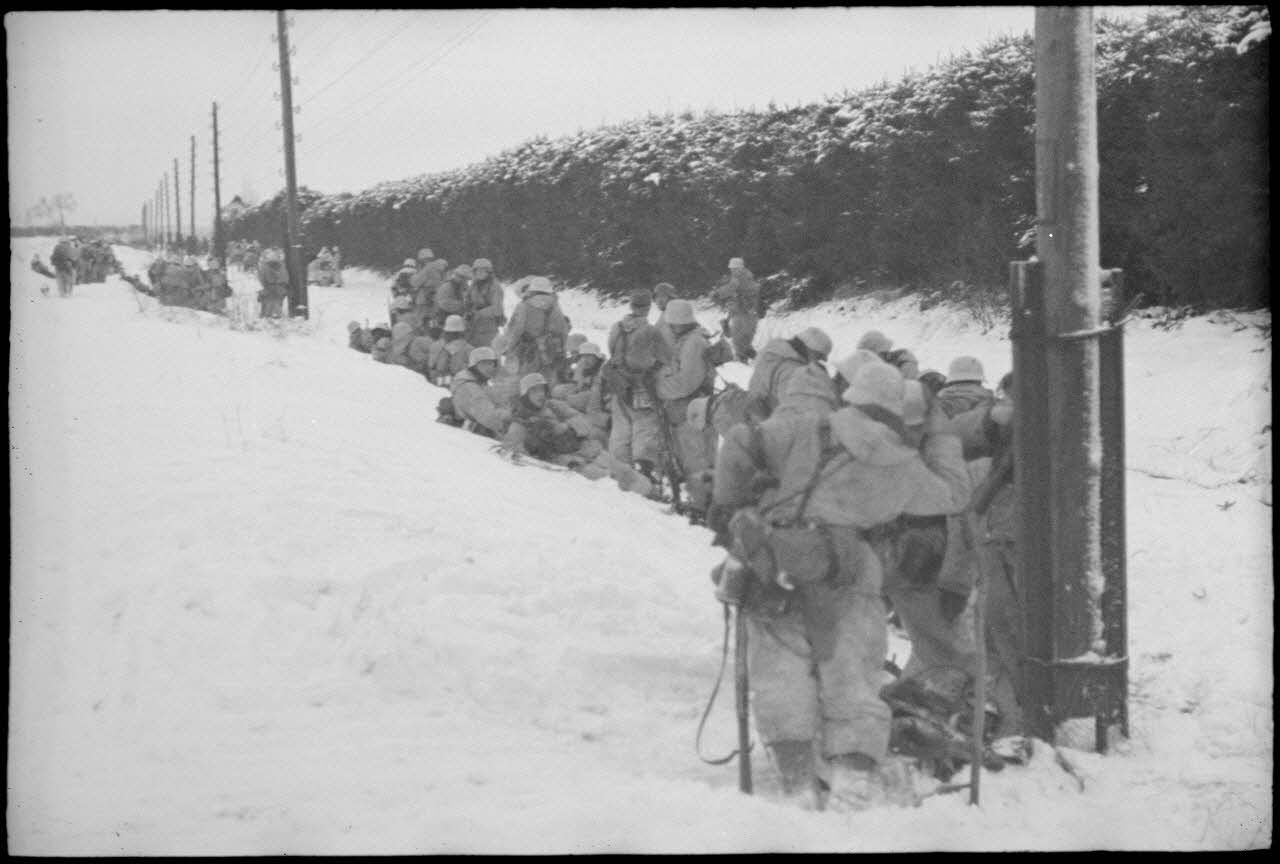 Fantassins allemands engagés dans la sécurisation d'une voie ferrée.
