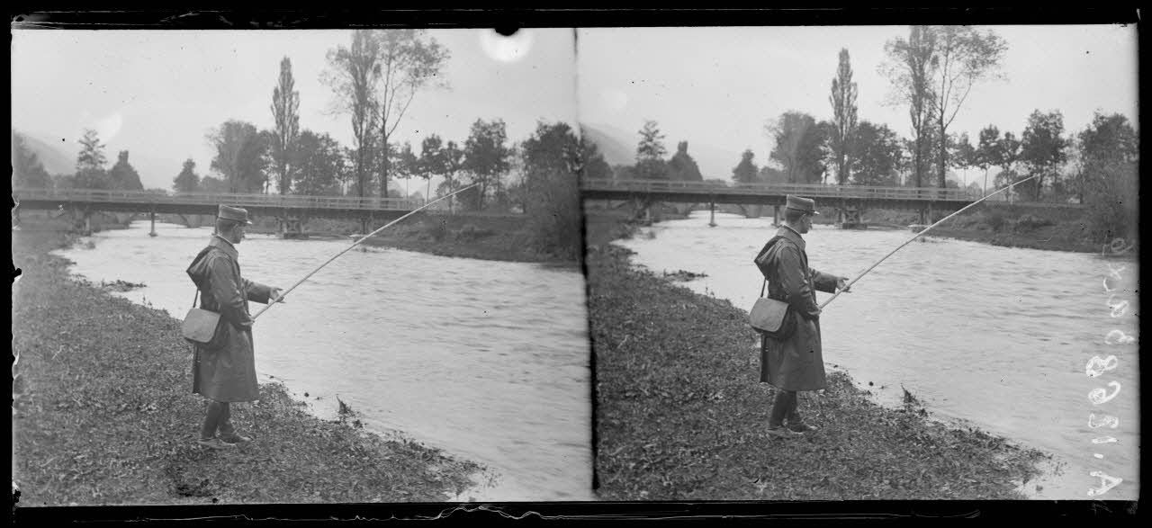Fellering (Haut-Rhin), pont de bois sur la Thur pour le passage du chemin de fer à voies étroites. [légende d'origine]