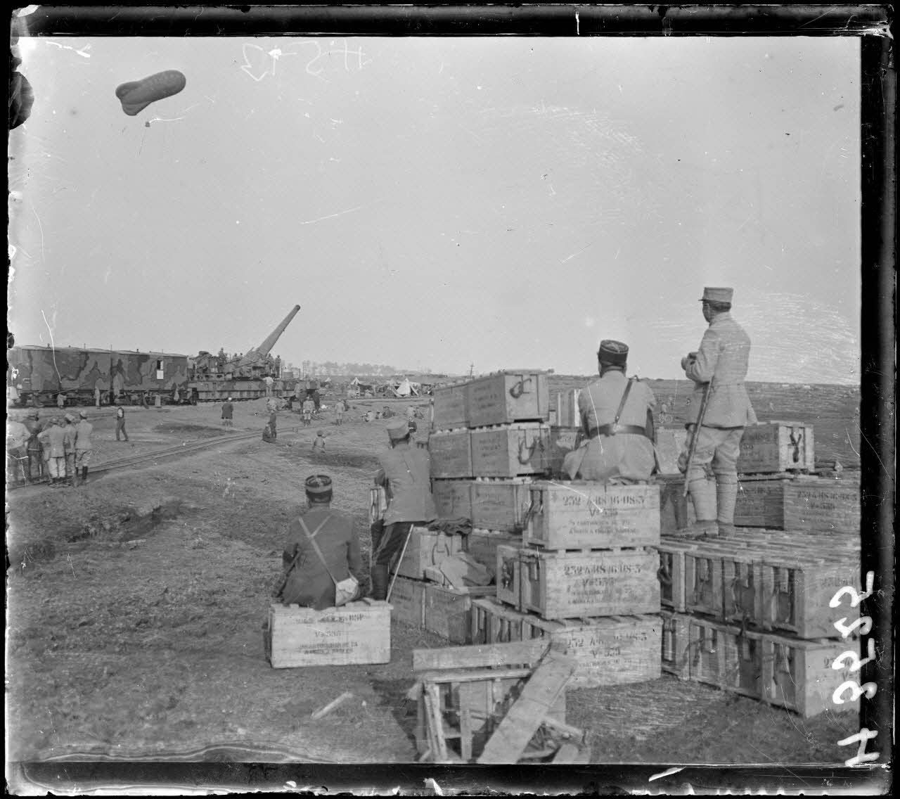 Près de la ferme Bronfay, au sud-ouest de Carnoy, des troupes anglaises et écossaises sont mêlées aux soldats français dont le 201e RI (régiment d'infanterie) qui revient des premières lignes. Des brancardiers assistent à l'enterrement d'un soldat. A la ferme du Billon, une pièce de 305 mm est en position de tir.