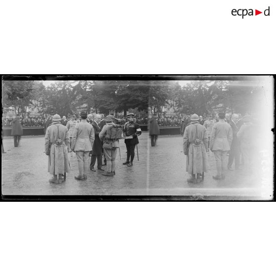 Paris, prise d'armes du 14 juillet 1918, le président de la République décore des officiers généraux et supérieurs.