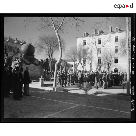 Face au monument aux morts de la Légion étrangère, on assiste à des remises de décorations, par le général de corps d'armée Henry Martin et d'autres scènes commémoratives.