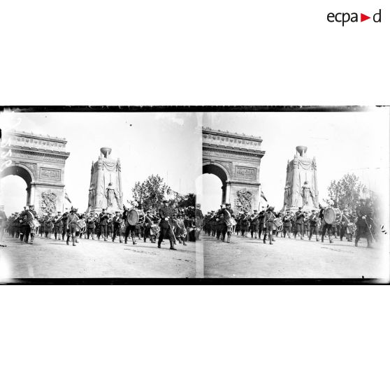 - sous l'Arc de Triomphe, le défilé des maréchaux Joffre et Foch et de leurs états-majors ;