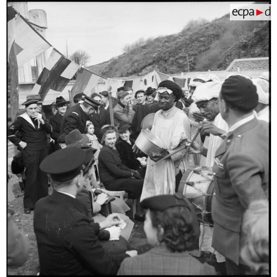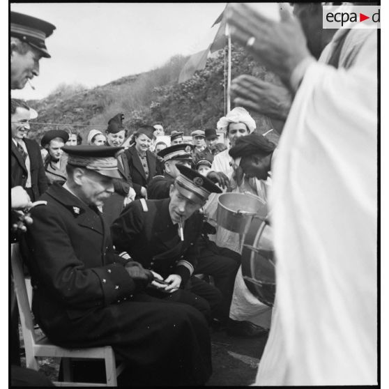 L'état-major de l'arsenal de Brest assiste à une fête des ouvriers nord-africains.