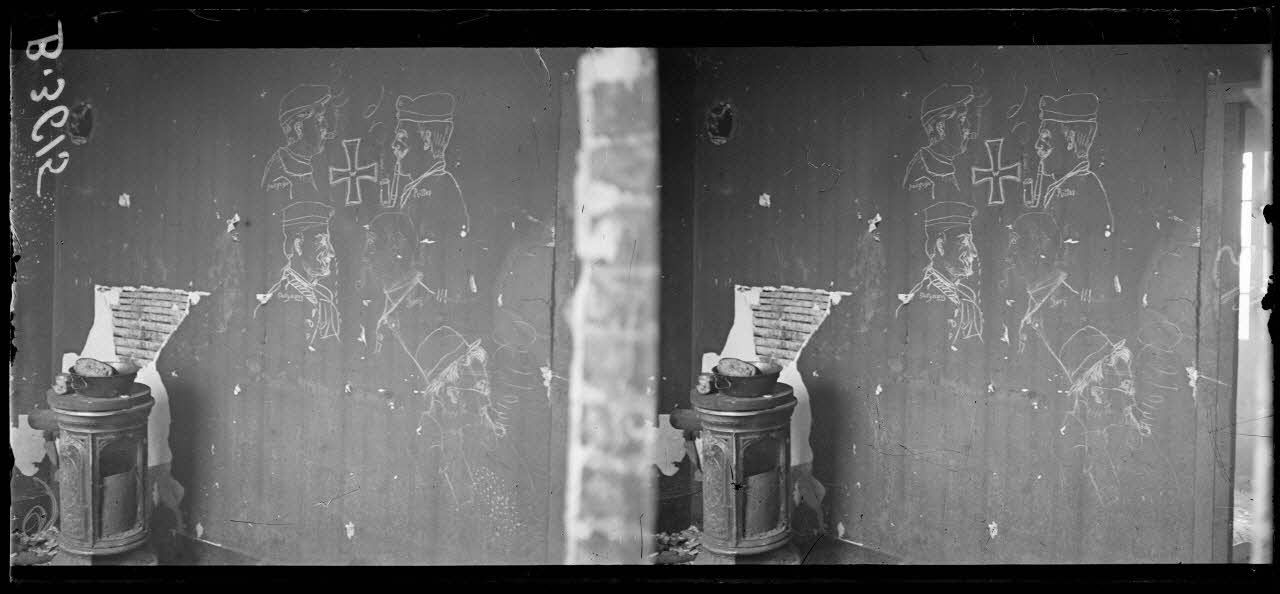 Flaucourt (Somme), caricatures allemandes sur les murs d’une maison. [légende d’origine]