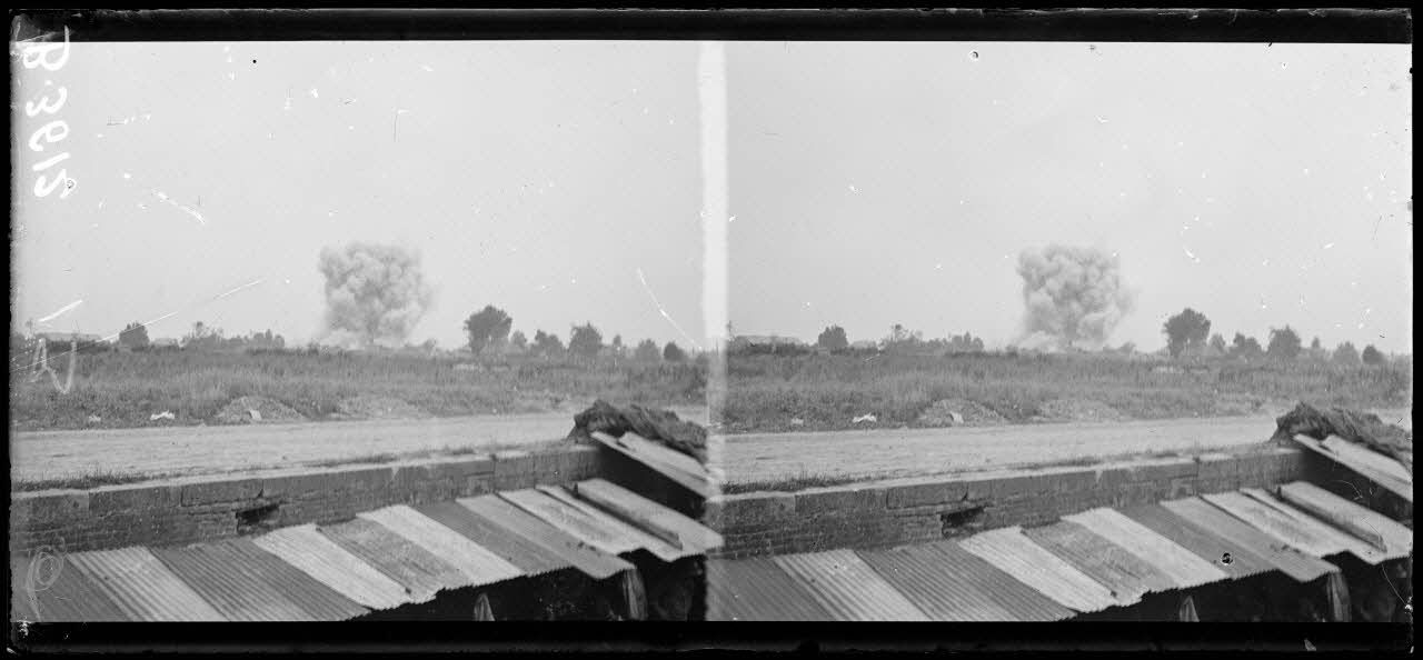 Eclatement d’obus allemands près de la route d’Assevillers à Belloy-en-Santerre.
