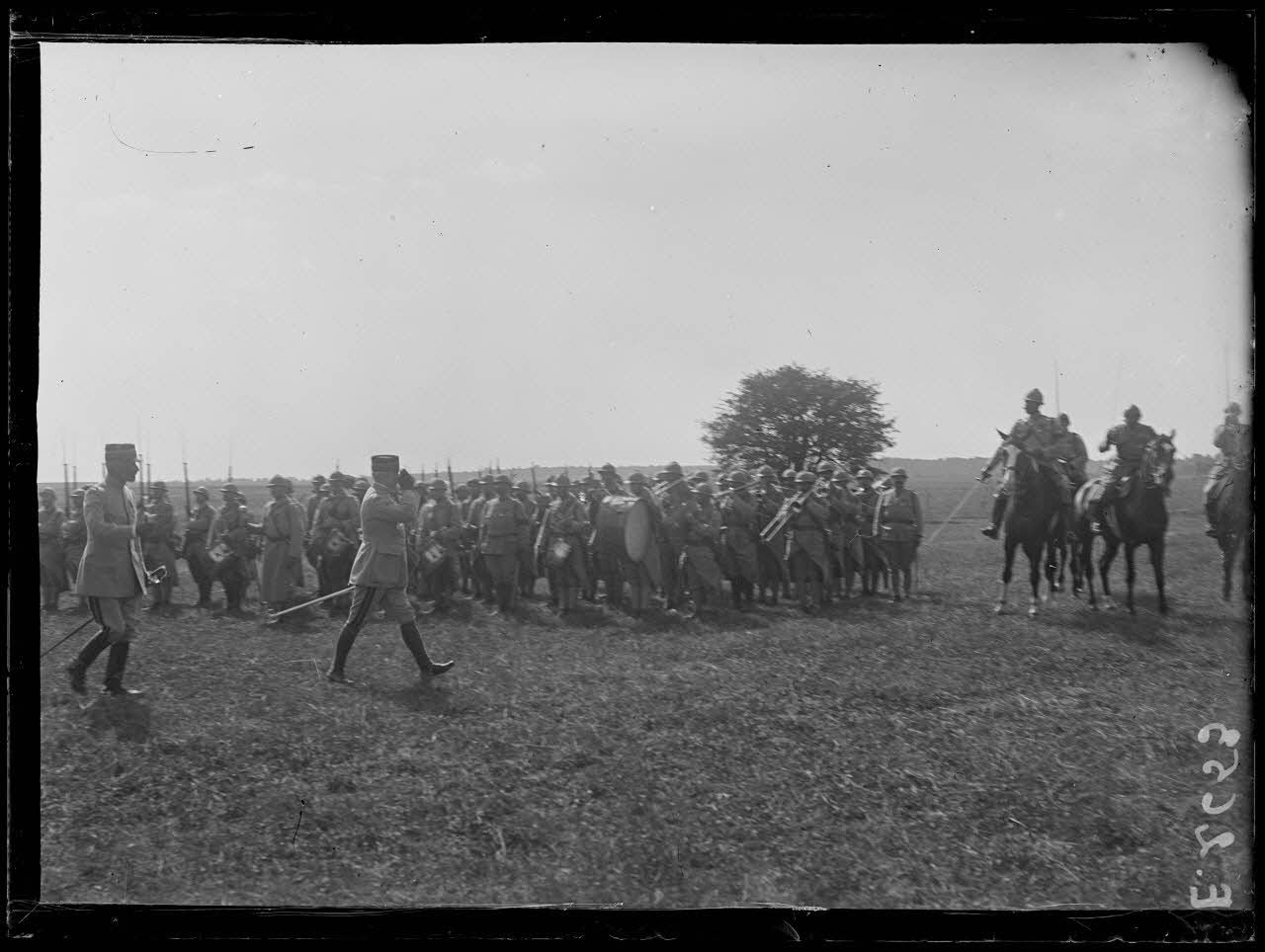 Fleury la Rivière. Marne. Revue de la 14e Division d'infanterie par le général Pétain. Le général Pétain passe devant les troupes. [légende d'origine]