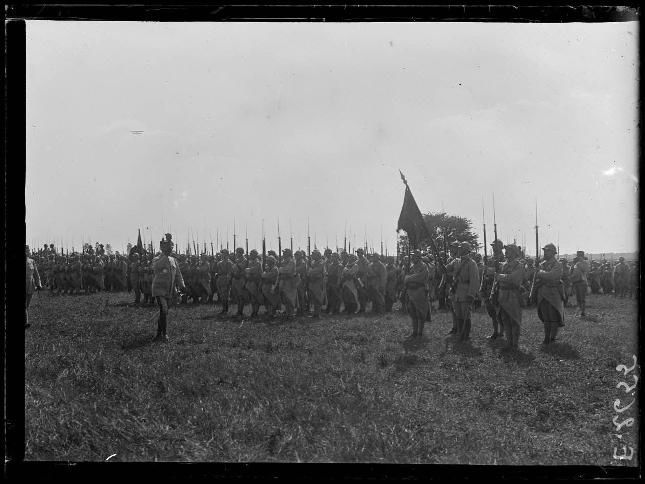 Fleury la Rivière. Marne. Revue de la 14e Division d'infanterie par le général Pétain. Le général Pétain prononce une allocution.