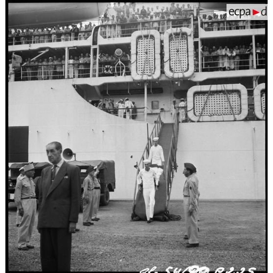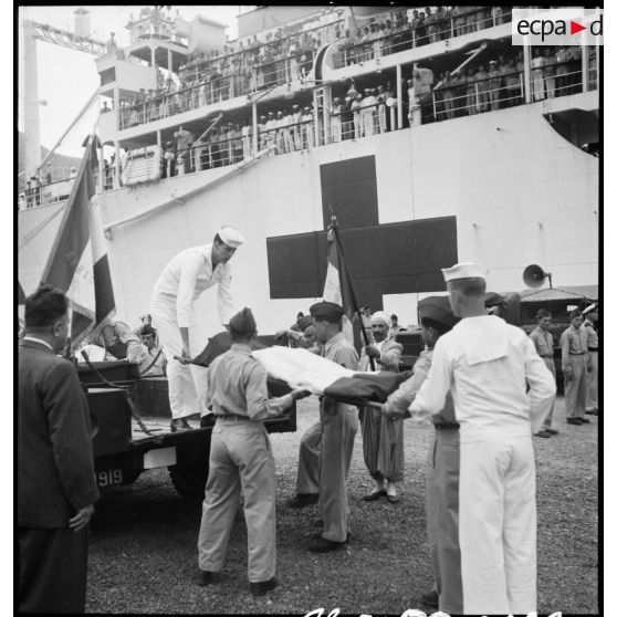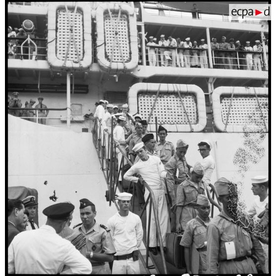 Débarquement des rapatriés d'Indochine d'un navire hôpital américain à Mers el Kebir.