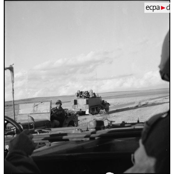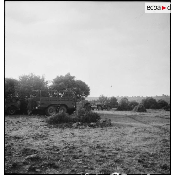 Convoi de jeep arrêté dans la plaine de la région de Bedeau.