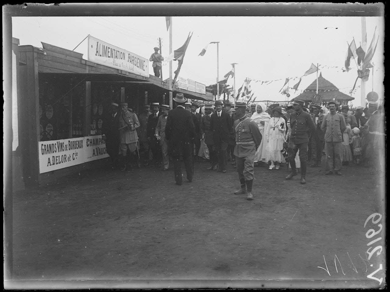 Le sultan du Maroc arrive à la foire où il est reçu par le général Lyautey qui lui présente les personnalités officielles françaises. Ils visitent ensemble le stand de la Croix-Rouge et le pavillon de l'agriculture.