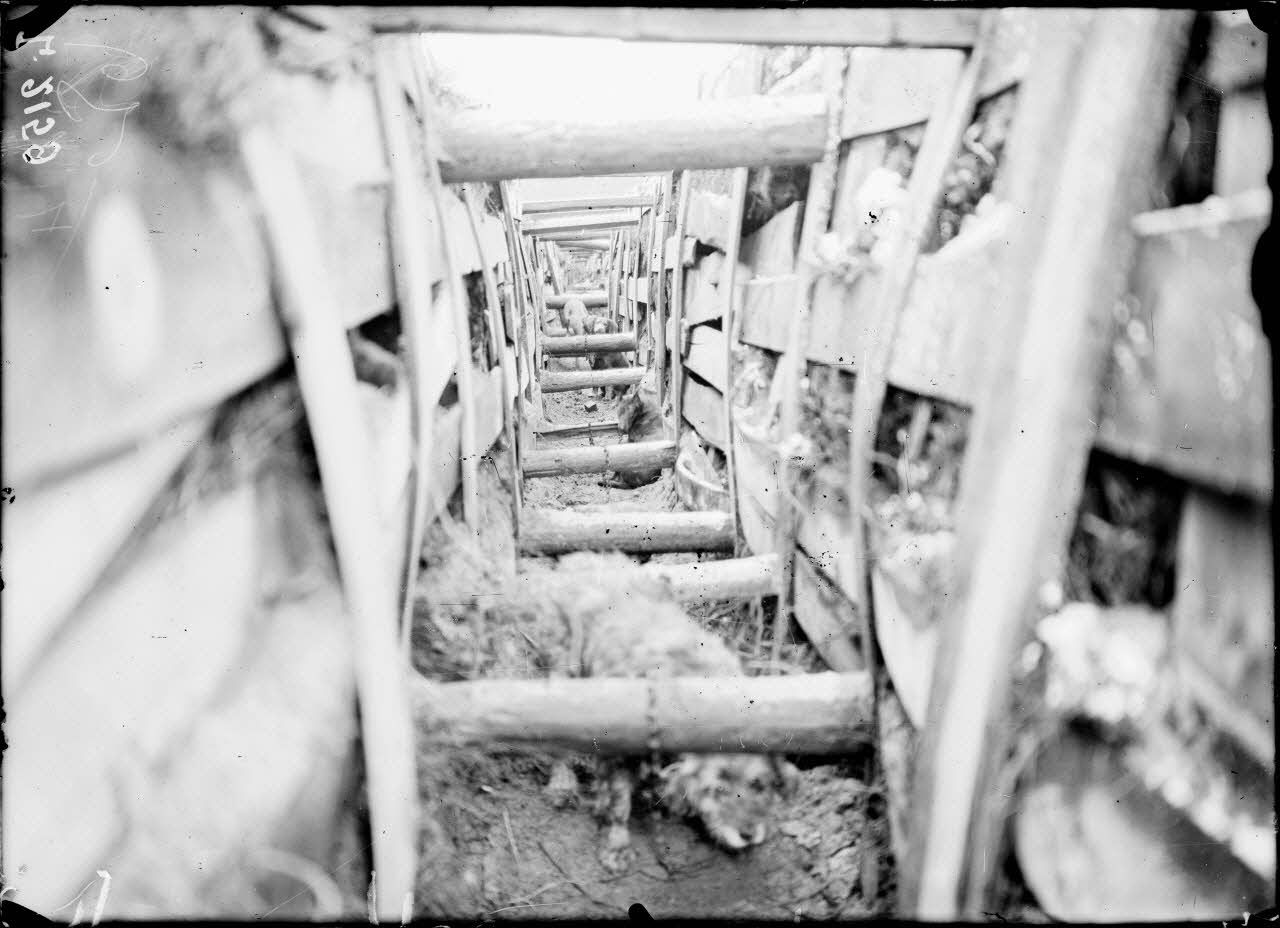 - les officiers au bord de la tranchée viennent constater l'effet des gaz sur les chiens ;
