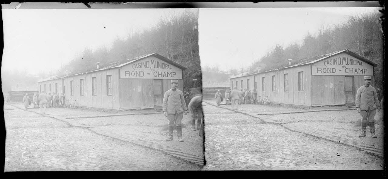 - Près de Vienne-le-Château, un cantonnement accueille les soldats qui reviennent des lignes. Une cuisine, un lavoir et un casino sont mis à disposition des hommes.