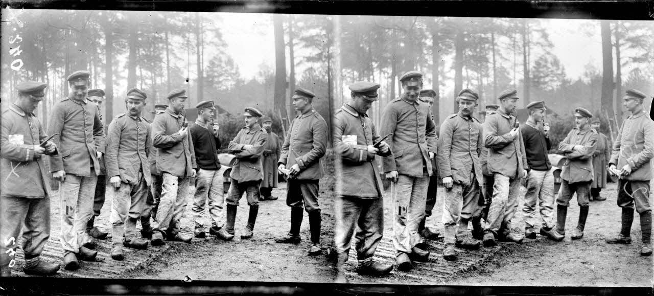 Forêt d'Orléans. Les Bordes. Camp de prisonniers. Lecture d'un journal allemand.