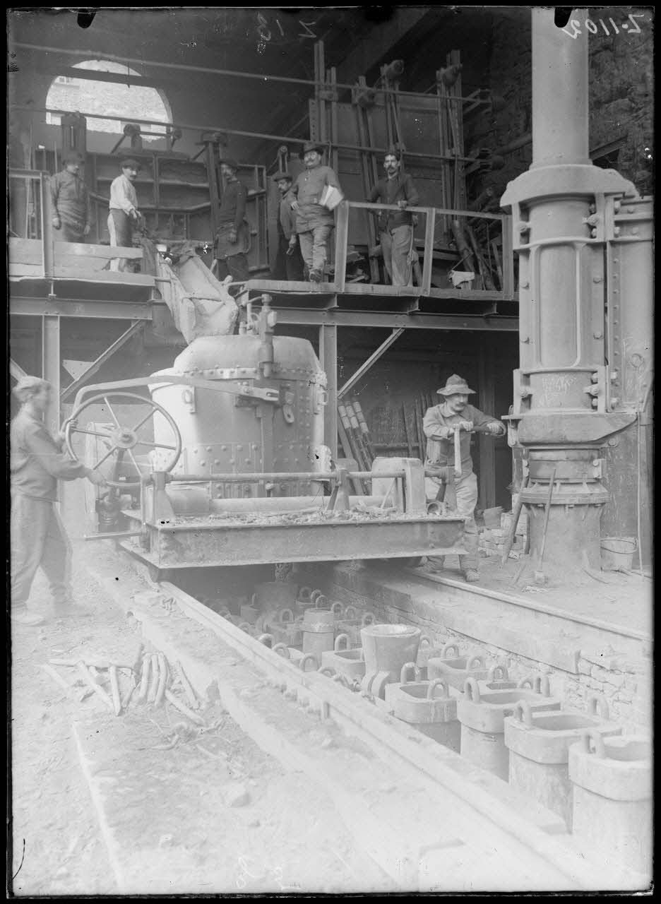 Allevard-les-Bains (Isère, janvier 1916, Z 1101 à Z 1103) une fonderie agrandit ses installations pour accroître sa production en obus de gros calibre.