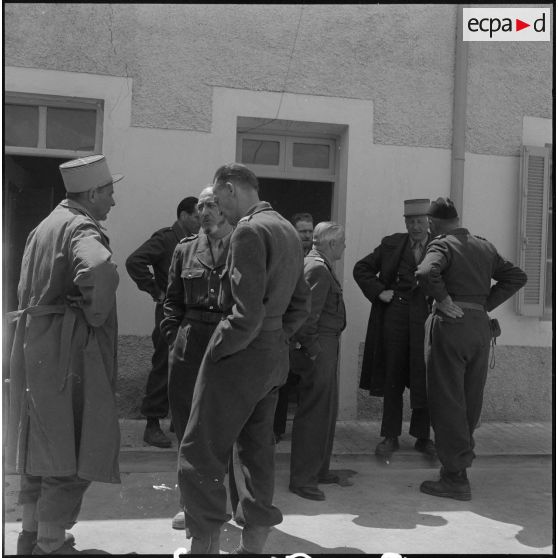 Visite d’un centre de formation de tirailleurs (le 1er régiment de tirailleurs algériens ?). Des officiers conversant ensemble sont présents dans le cantonnement (R17 à R19). Photographies de groupe des tirailleurs d’origine nord-africaine en formation (R2, R4, R5). Les élèves sont photographiés pendant un cours (R6, R7).