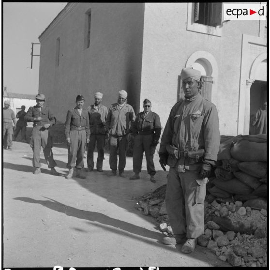 Formation de tirailleurs dans un cantonnement militaire. [Description en cours]
