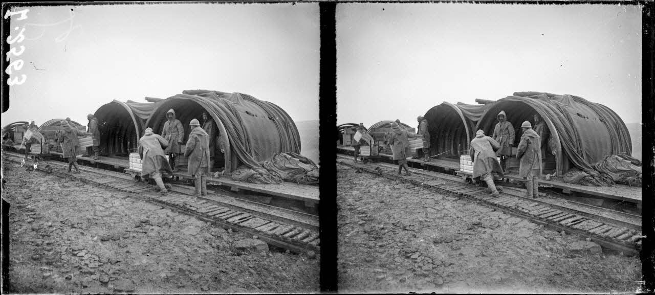 Fort de Douaumont. Wagonnets pour les tavaux de réfection des abords du fort.