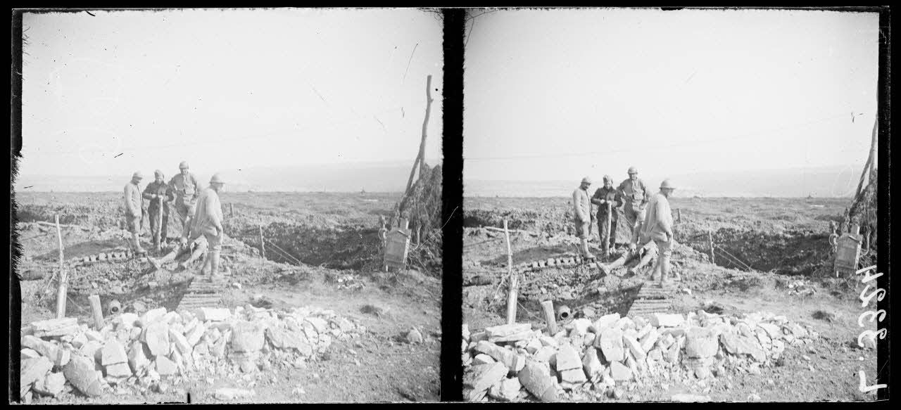 - aux abords du fort de Douaumont, sous la conduite du colonel Dehay, la mission marche vers le fort (SPA 68 L 3311/3323), les membres de la mission portent des masques à gaz autour du cou, certains ont à la main des casques allemands (SPA 68 L 3315/3317), une piste près du fort (SPA 68 L 3324), la mission devant le fort (SPA 68 L 3321/3326), le colonel Dehay sur une piste du fort (SPA 68 L 3329) ;