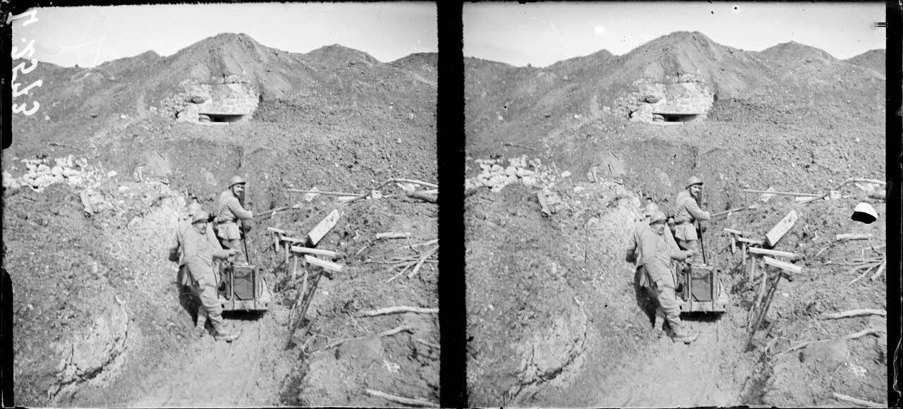 - les travaux de remise en état des abords du fort de Douaumont (SPA 54 L 2550/2562/2365/2569/2570/2573), les abris mis en place pour les travaux et le transport de matériel par voie Decauville (SPA 54 L 2363), les fossés du fort (SPA 54 L 2559), l'opérateur de la SPCA derrière sa caméra avec son assistant aux abords du fort (SPA 54 L 2551/2560), le capitaine Gilson, commmandant du fort, dans son bureau (SPA 54 L 2553), le poste de télégraphie optique du fort (SPA 54 L 2558) ;