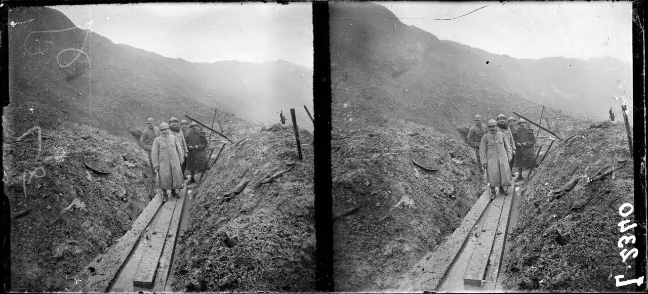 - sur la route de Verdun à Douaumont : des paysages dévastés (SPA 49 L 2333), des cadavres (SPA 49 L 2332/2337/2366), des soldats marchant sur une voie Decauville (SPA 49 L 2335), la "corvée de matériel" (des soldats en file indienne dans les entonnoirs portent des pelles et des pioches, SPA 49 L 2361), un ravitaillement en vin partant pour le fort de Douaumont par Decauville (SPA 49 L 2359), un soldat pose devant l'unique arbre du secteur (SPA 49 L 2366) ;