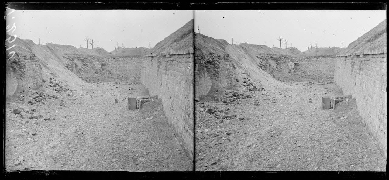 Fort de la Pompelle, Marne, le fort après les attaques du 1er et du 2 mars 1918. Un des fossés.