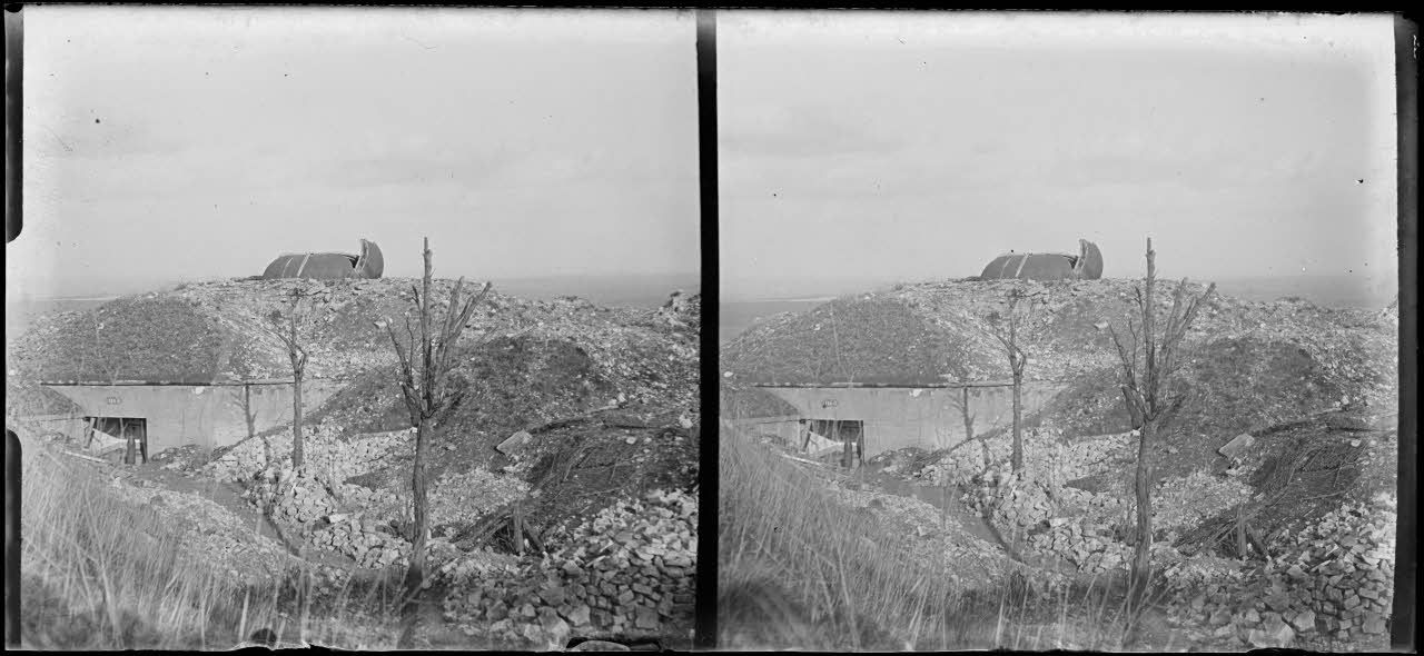 D169-2-4. Fort de Liouville (Meuse). Dans les ruines. Tourelle blindée qui n'a pas pu résister aux 420 allemands.
