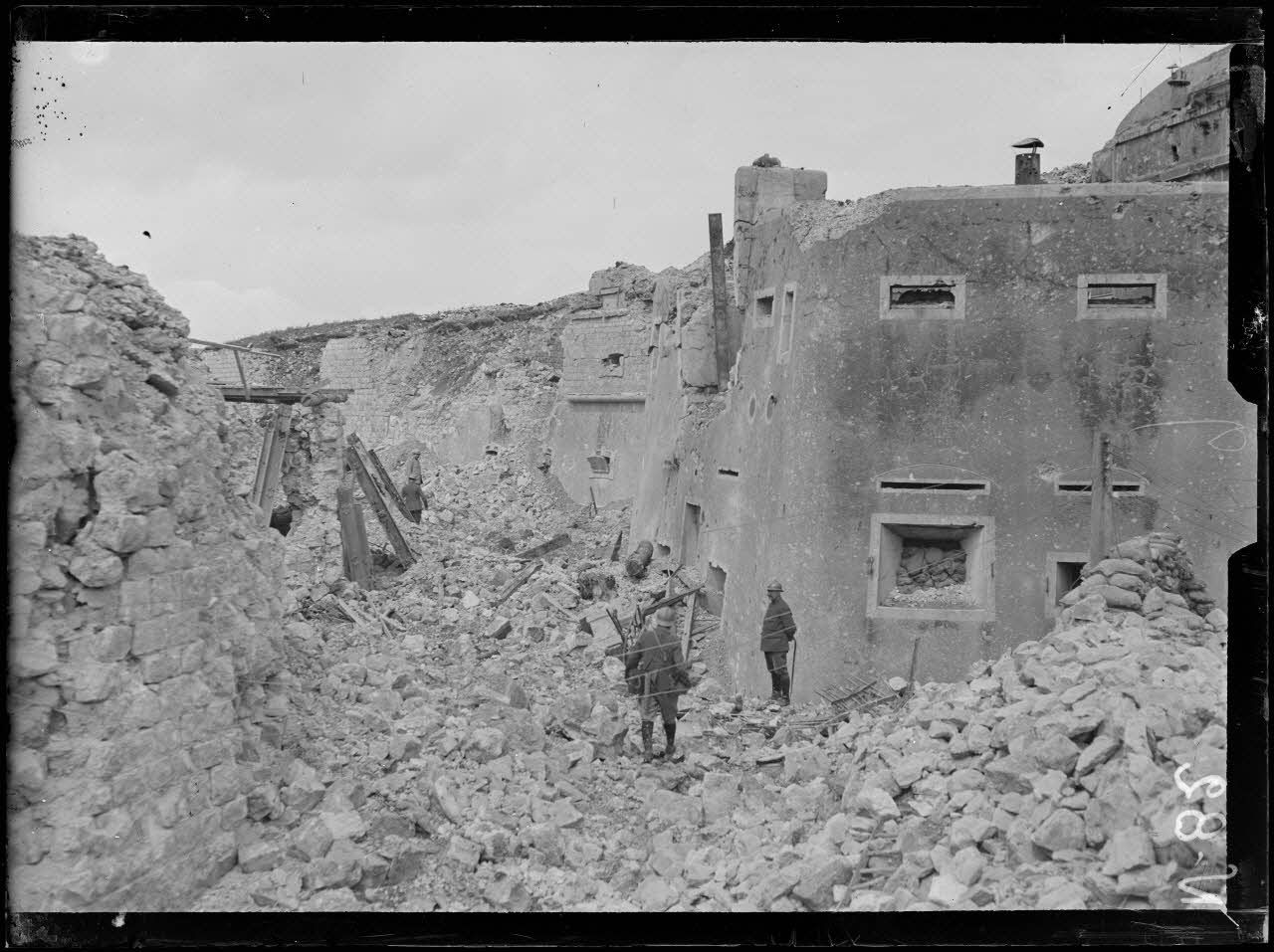 - Au fort de Moulainville (12/07/1916, N 98 à N 102), les remparts du fort ont été dévastés par les obus de 420 mm, ne laissant plus que des amas de gravats. Les soldats organisent leur vie dans les casemates dévastées.