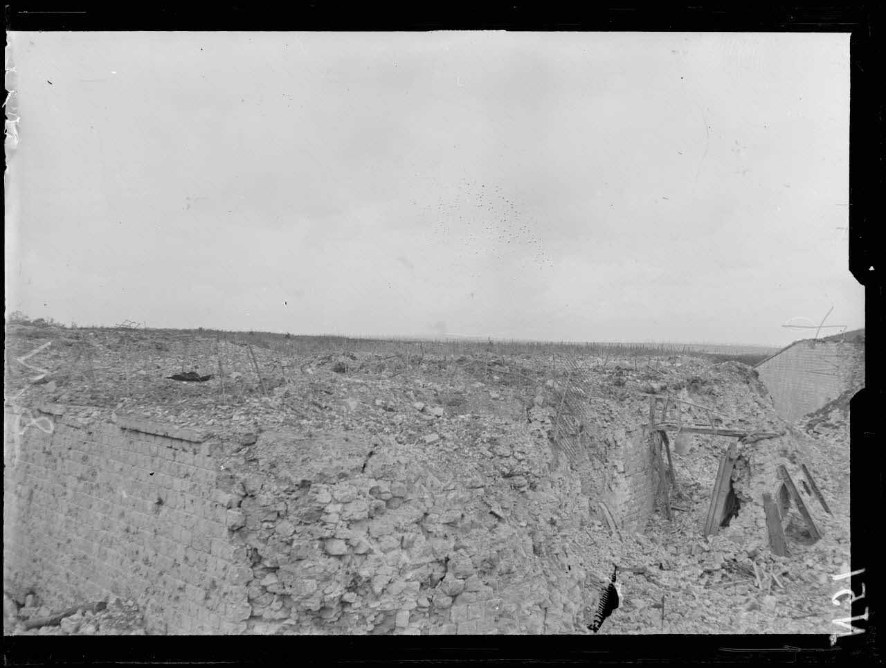 Verdun bombardé et sa région dévastée. Les restes du fort de Moulainville.