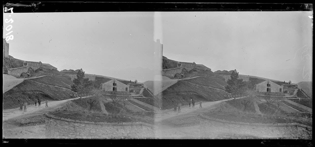 Citadelle d'Entreveaux (Basses-Alpes). Camp d'officiers allemands prisonniers. La promenade des officiers prisonniers.