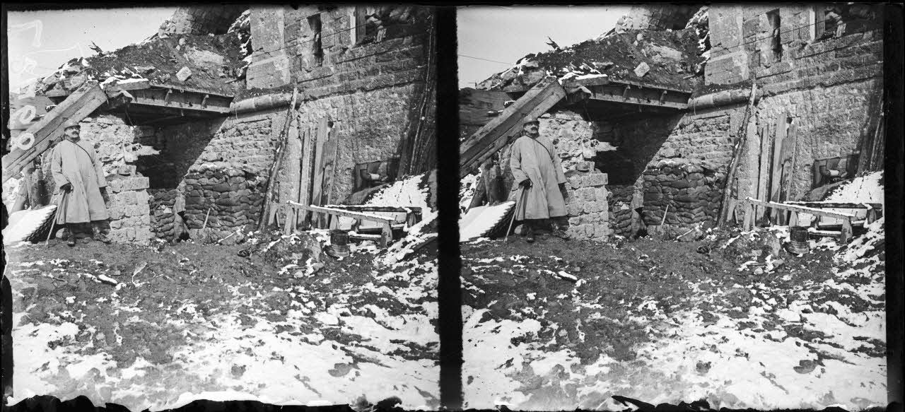 - Sur la route de Souville à Verdun (Meuse, 23/03/1917, L 2463 et L 2469) un réservoir d'eau a été détruit, alors qu'un cimetière militaire est sous la neige.